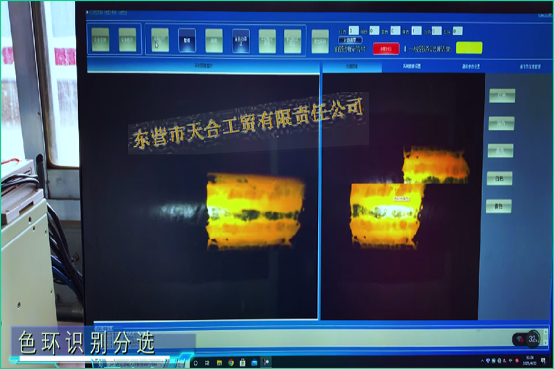 色環自動識別分選采用電子攝像頭與智能識別技術相結合的方法,屬國內首次應用在油管修復領域。根據油管修復工藝和修復標準要求區分不同規格油管在修復過程中和修復后均涂有色環標志,為了減輕工人的勞動強度和降低員工因視覺疲勞引起的誤判,我公司研制出智能視覺色環識別裝置。此裝置可代替人工進行色環標志的判斷,并輸出指令將修復油管轉入相對應的下一工序和成品的分類擺放。